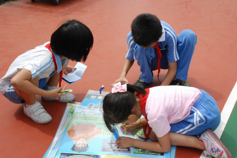 小朋友认真填写禁毒知识