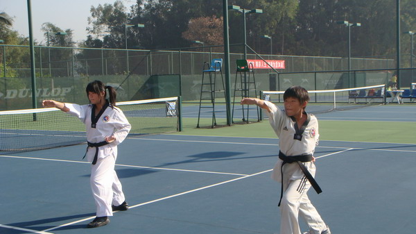 高教练班最有型的俊男靓女现身----“黑带”跆拳道表演