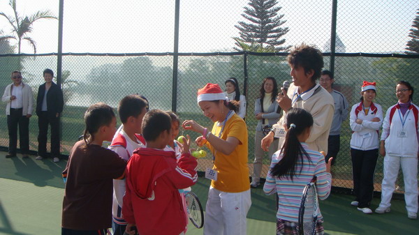 对未来充满了憧憬,编织着未来辉煌的故事! 几年来,我们在东湖网球俱乐部老师的指导下和关爱下,在教练员和全体同学的努力下,与60位兄弟姐妹辅助互爱,共同进步! 今天,我们燃起心中的的篝火,用歌声和微笑迎接圣诞节的来临。 在这里,我向在坐的每位表达最崇高的敬意和最诚挚的节日问候:花好月圆人更圆,国旺家旺人更旺! 圣诞佳节喜相逢,平安之夜欢乐多。 亲爱的同学们,真心的祝愿您。。圣诞快乐。 2008年越通(东湖)网球培训班圣诞联欢会现在开始 :