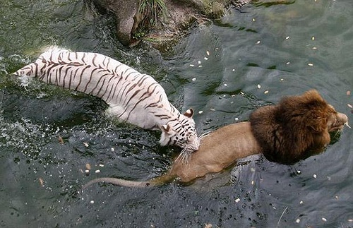 白虎:亲爱的,咱俩一起鸳鸯戏水吧! 狮子:不要啦!人家也是公的!!!