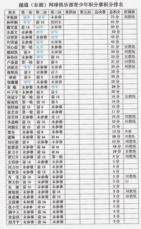 → 快速回复:越通青少年网球积分赛(三)积分情况