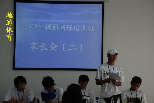 2009年9月26日早10:00,越通代总带领全体教练员在乔迁后的新家---多功能会议厅盛大召开!来自初级、中级和短网班的20几位家长聚集一堂,为的总结上半年学生的学习情况与下阶段的目标与训练安排,所有教练员都分别对各自班级的学员进行总结,一对一地向家长汇报。