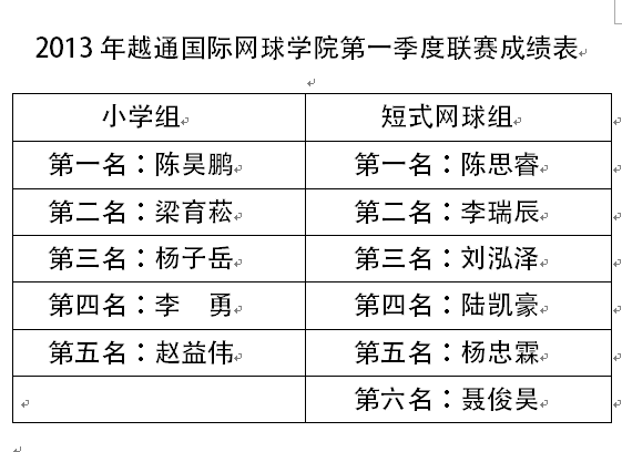 主题:【原创】2013越通国际网球学院第一季度联赛成绩单