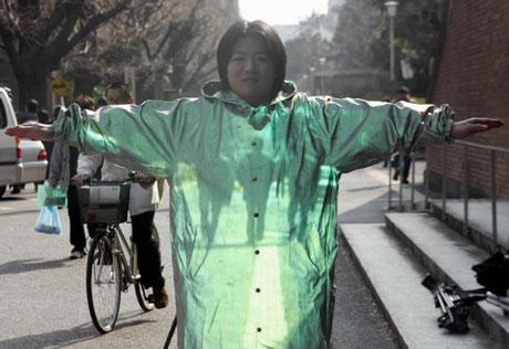 据新华社报道,2004年,日本东京大学教授推出了一款宽大外衣,人们只需穿上这件外衣,就可以让人“难以辨认”。