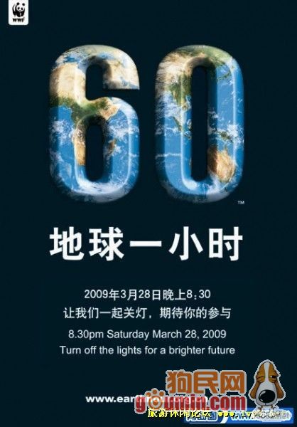 2009年3月28日晚上8:30,全球各地的人们将为”地球一小时”而熄灯。