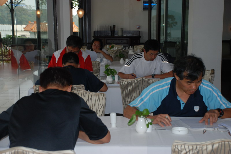 5月31日,为期四天的第六期2009年USPTA美国职业网协国际专业网球教练课程圆满结束,经过四天的学习培训,课程内容分为:学习阶段(指出及修正错误方法)、技能教授阶段(生物力学的介绍)、了解握拍(小组及个人的教授方式)和训练阶段(技术及战术发挥训练方式)。 上午,在球场上进行了球技测试,下午在宾馆进行了笔试,我们去看看他们的考试情况吧!!!