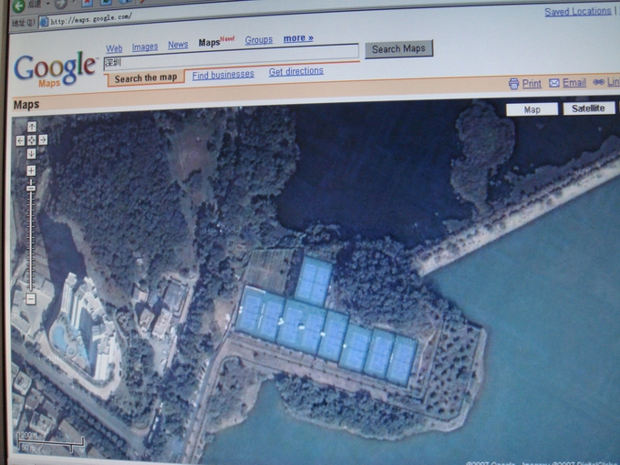 这是我们越通青少年会的会长——张高宇在GOOGLE网上发现的,我们特地拍了照片让大家分享一下,越通(东湖)网球俱乐部的全景在卫星显示下可真的很漂亮呢,这个很难看到哦!