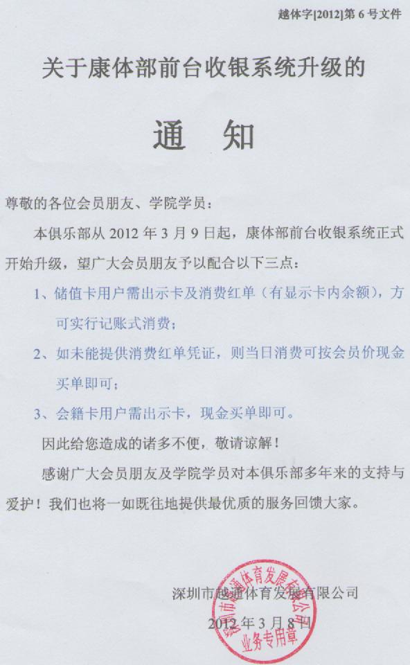 → 快速回复:【俱乐部通知】越通前台收费系统升级通知