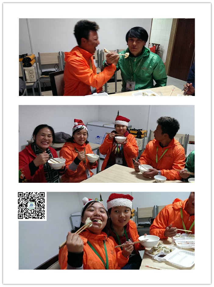 今天是冬至节,员工们一齐聚在越通的厨房过冬至,北饺子南汤圆,于是聚集了南北两边的员工们就有了饺子汤圆宴。