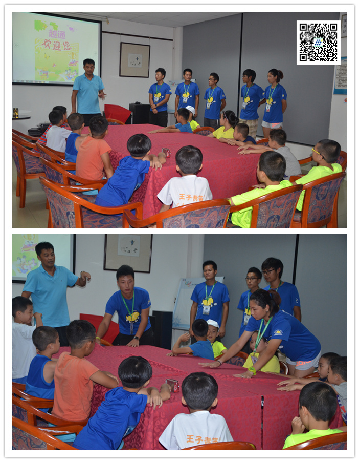 昨夜,越通全体教练学员们迎接了一批来自广州王子青苗网球队的小朋友,与我们一起开展网球夏令营!在会议室内,教练员们相互自我介绍和这群即将和我们一起度过四天四夜的小朋友们初步建立起了友谊!