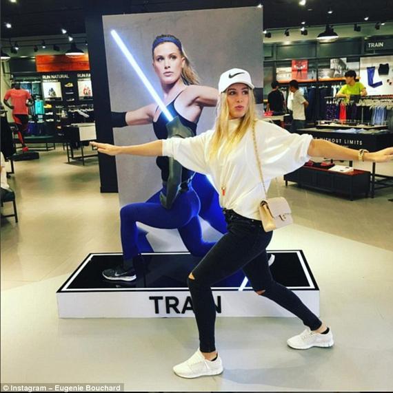 近日,在备战马来西亚公开赛的闲暇中,加拿大姑娘在Instagram放出了在购物中心里与自己海报的一张合照。照片里她还原了海报中的姿势,右臂前伸,脸上噙着微笑,并望向左边,看上去已经从脆败给中国小花郑赛赛的苦涩失利中走了出来。上周她们在多哈超五赛第三轮相遇,布沙尔6-7/1-6不敌郑赛赛。