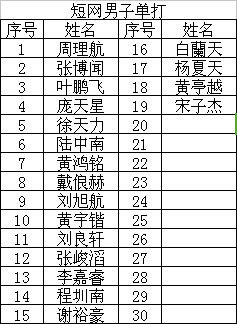 短网男子单打