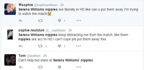 有观众在推特上直白地表示了他们的不满道,“在电视画面中小威露点太清晰,即使我想专注看球,也无法将目光移开。”而小威的球迷则提醒称观众应当把重点放在小威屡次打破历史上。据悉,小威在半决赛中仅耗时49分钟晋级,成为了有史以来温网耗时最短的一场半决赛。