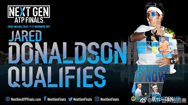 北京时间10月25日消息,ATP官方今日宣布,美国新星唐纳德森锁定了ATP新生代球员年终总决赛的参赛席位,11月7日至11日期间将在米兰与A-兹维列夫、卢布列夫、卡恰诺夫、沙波瓦洛夫及丘里奇同场竞技。