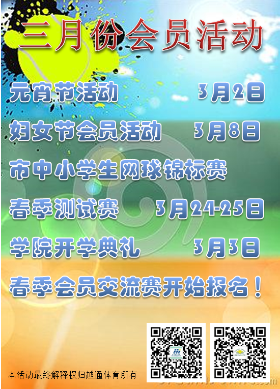 三月份会员活动一览,更多精彩活动,敬请关注越通体育公众号!