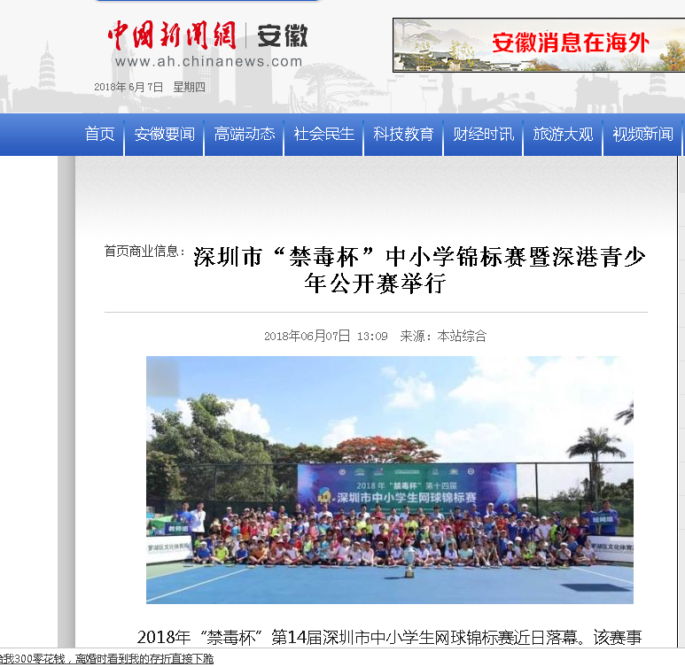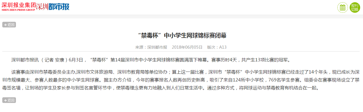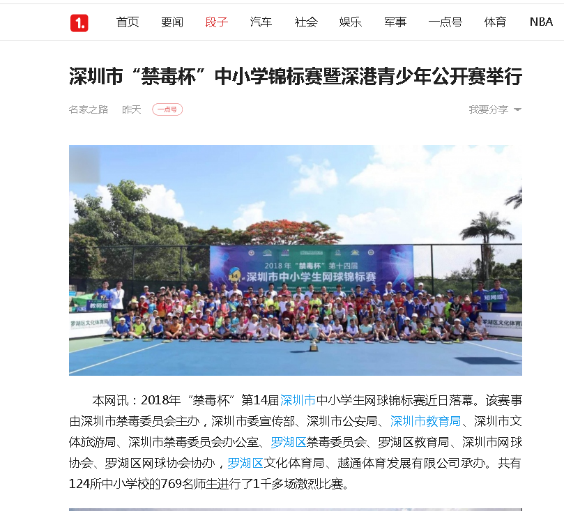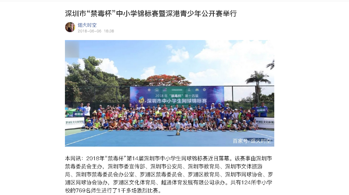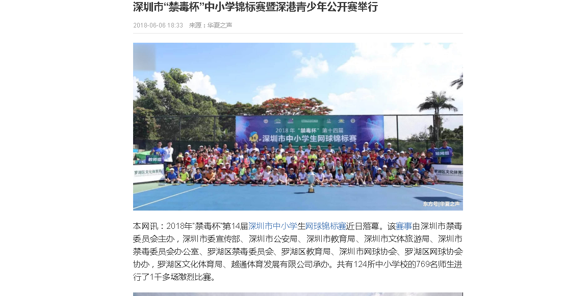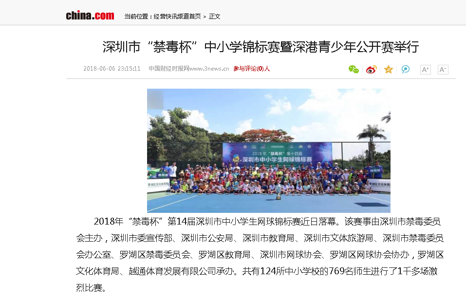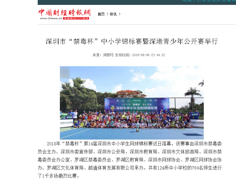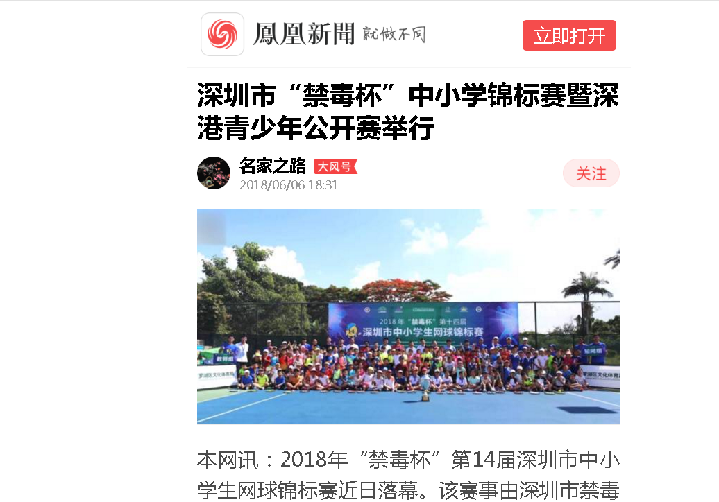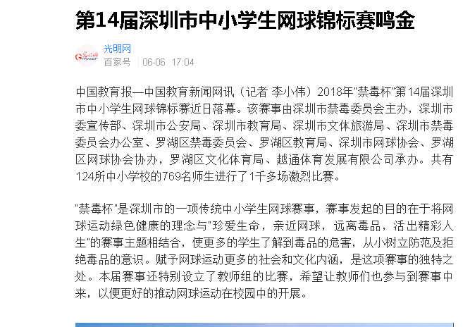 2018年“禁毒杯”第十四届深圳市中小学生网球锦标赛媒体报道截图如下