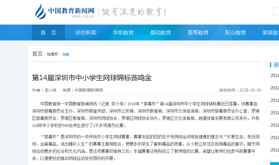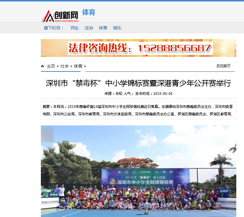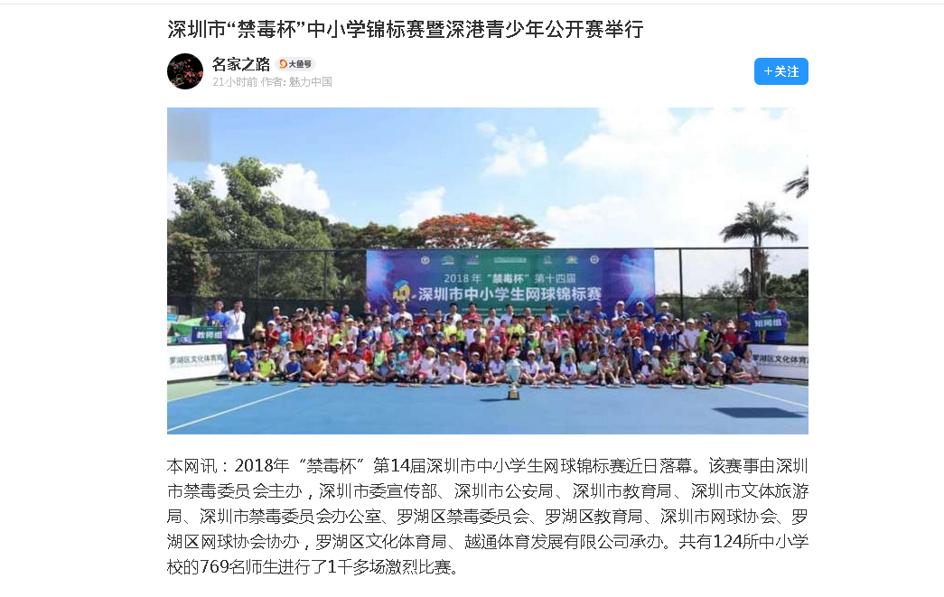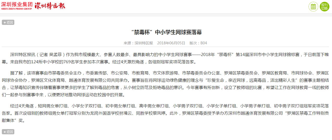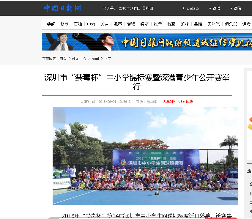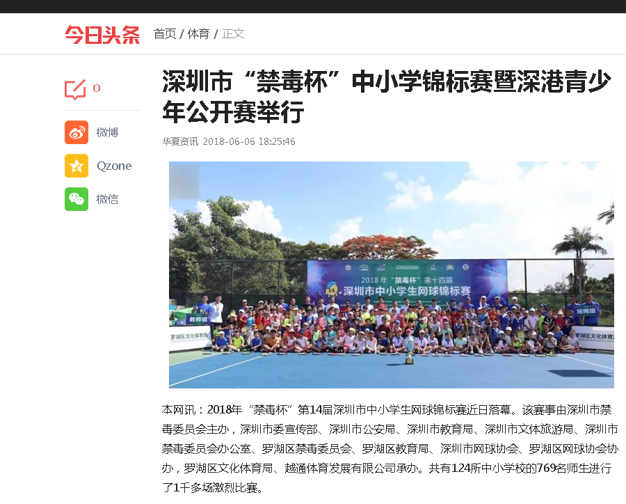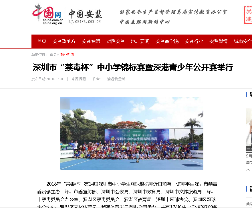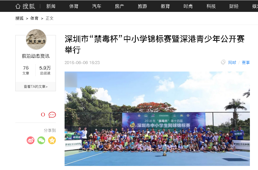 2018年“禁毒杯”第十四届深圳市中小学生网球锦标赛媒体报道截图如下