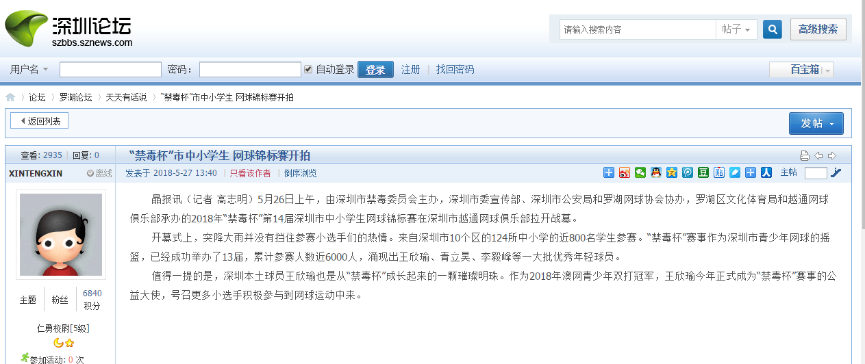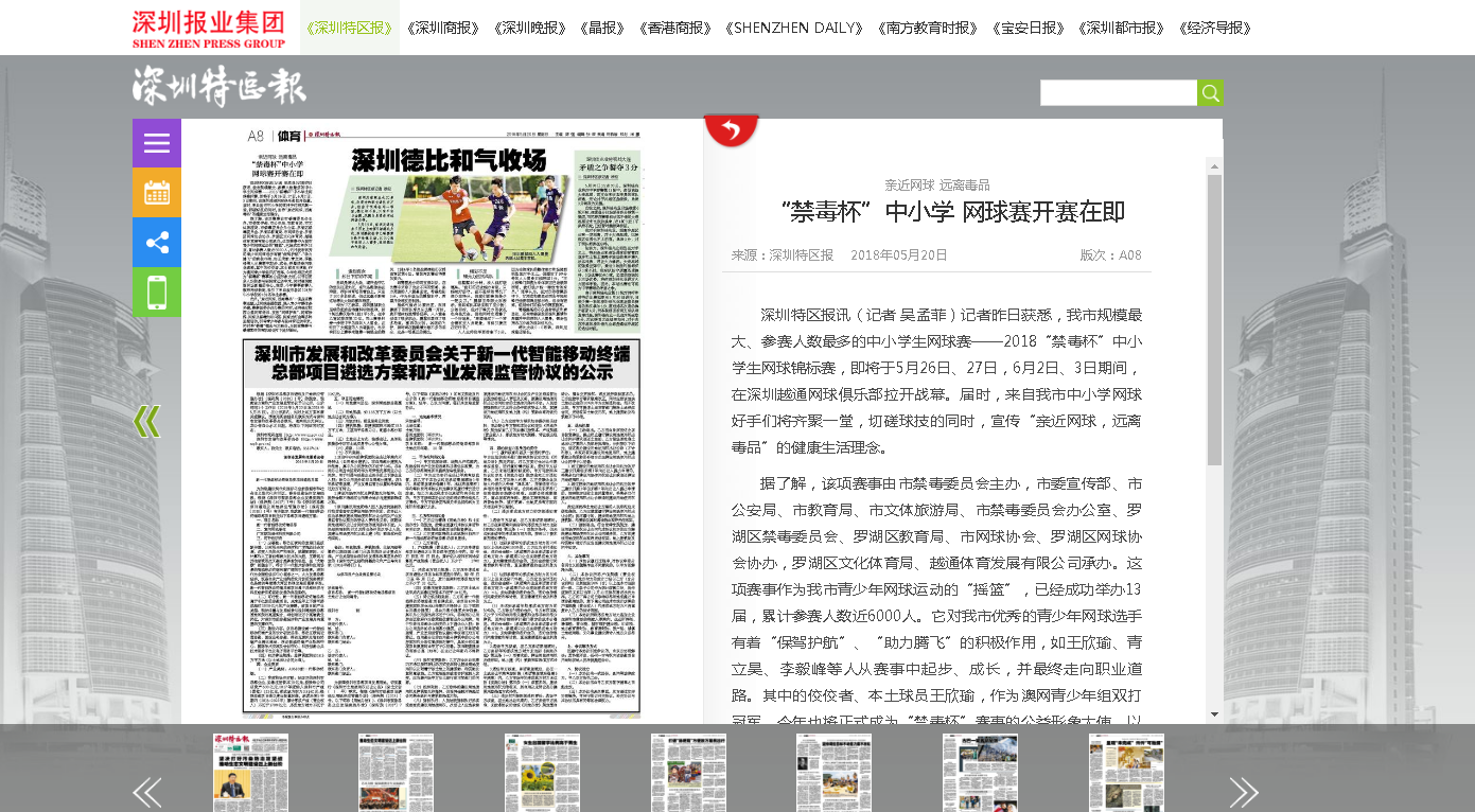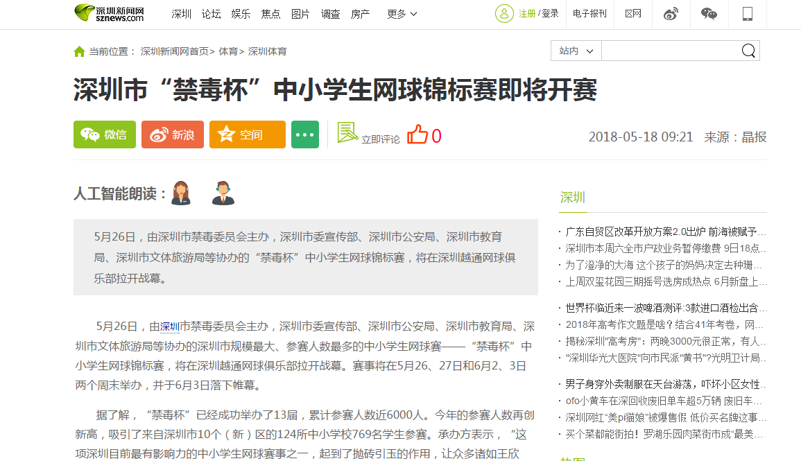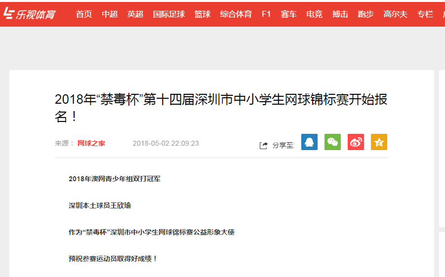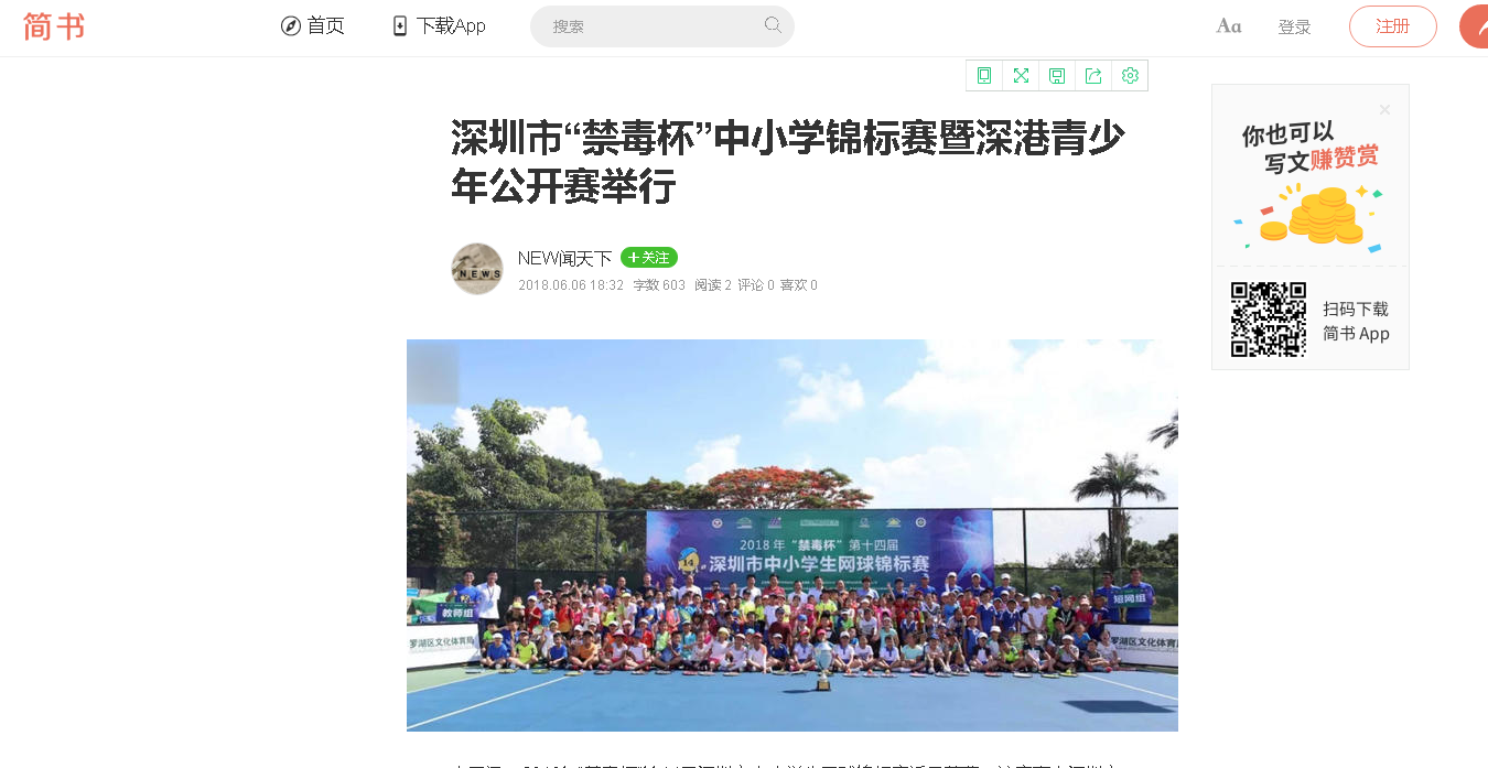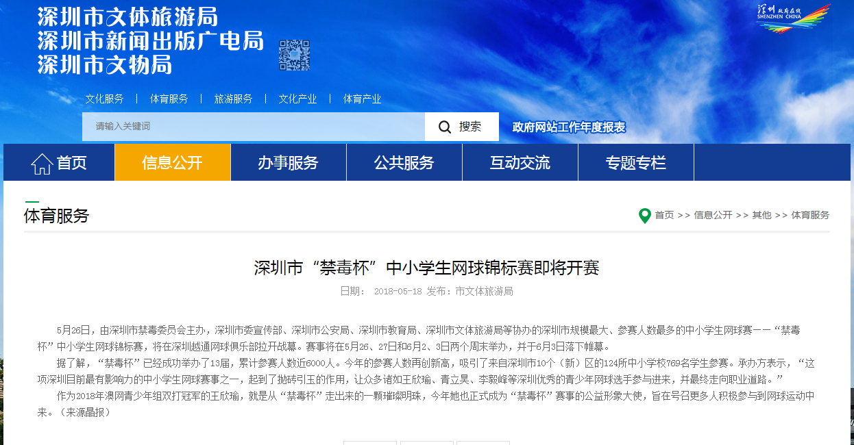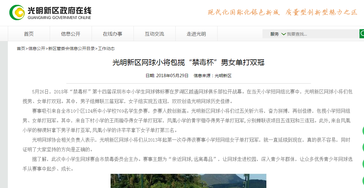 2018年“禁毒杯”第十四届深圳市中小学生网球锦标赛媒体报道截图如下