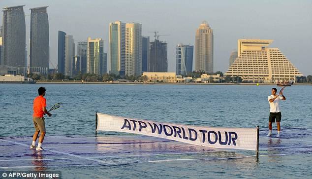 海上球场 地点:卡塔尔多哈 同样是在多哈,2011年,赛事组委会特意设计一片海上网球场,当年赛会头两号种子纳达尔和费德勒场进行了一场“水上对决”。活动之后,费德勒感叹这是一次有趣而特殊的体验。