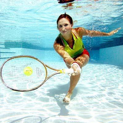 水下网球场 地点:美国迈阿密比斯坎湾 为推广女子巡回赛在全球的影响力,法国美女格勒文曾在美国迈阿密比斯坎湾的游泳池中,演绎水下网球的神奇与美丽。