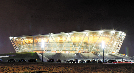 ▲加拿大埃德蒙顿英联邦体育场色彩缤纷
