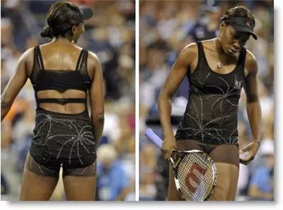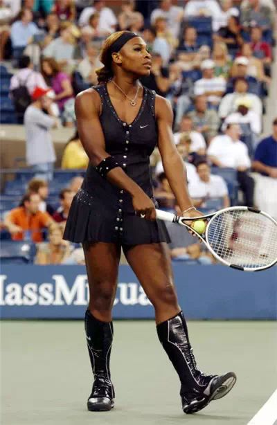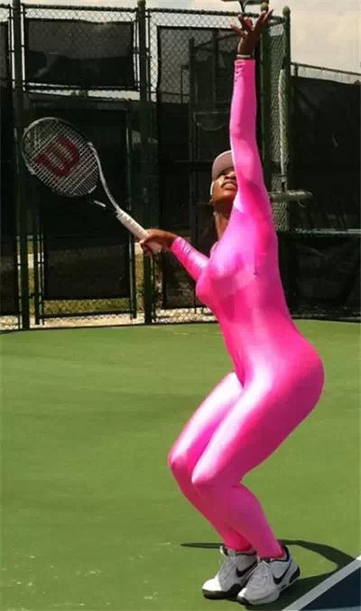 黑色蕾丝裹满身,大威仿佛球场上的黑天鹅,穿着舒服才有鬼。