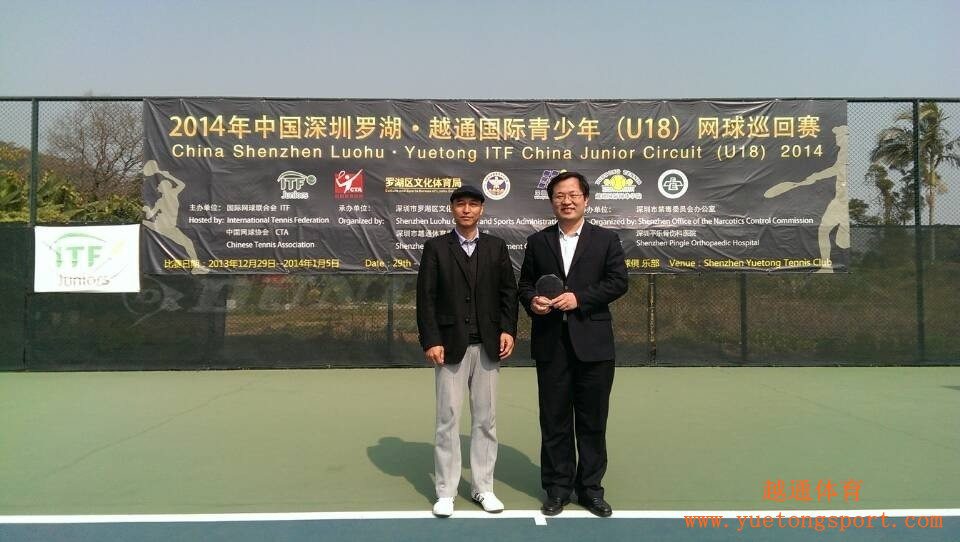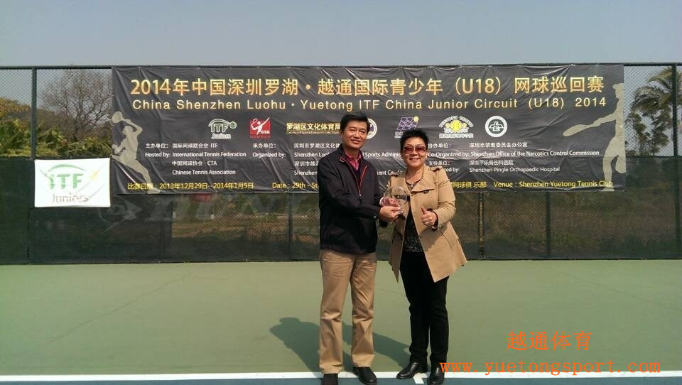 2014年1月5日,由国际网联授权,中国网球协会主办,深圳市罗湖区文化体育局、深圳市越通体育发展有限公司承办,深圳市禁毒委员会办公室协办的2014年中国深圳罗湖•越通国际青少年(U18)网球巡回赛在深圳市罗湖区越通网球俱乐部落下帷幕。来自中国、法国、丹麦、乌兹别克斯坦、澳大利亚等10多个国家和地区184名男、女运动员,经过8天 252场次的激烈角逐,最终骆建勋(中国台湾)和梁敏滢(中国广东)分别折下男女单打的桂冠,周升浩(中国河南)和袁悦(中国八一队)分别获得了男女单打的亚军;林泽邦/李熹研(中国香港)和冯晨晨/何佳颖(中国福建)分别获得了男女双打的冠军,男双亚军是罗乐培/王康杰(中国香港),女双亚军是黄丽佳(中国广州)/郭涵煜(中国河南)。
